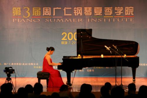 7月30、31日晚著名钢琴演奏家,广州星海音乐学院黎颂文教授和法籍华裔钢琴家种佳女士再次掀起夏季学院音乐会热潮,他们精湛的技术,令台下所有学员为之倾倒。黎颂文教授的勃拉姆斯4首钢琴曲,肖邦降A大调第三叙事曲,拉维尔的圆舞曲,及李斯特的但丁读后感,给观众留下了极其深刻的印象,使人久久不能忘怀。种佳女士在音乐会上演奏了四首大家熟知的具有浓郁陕北风情的民歌——陕北民歌主题变奏曲、兰花花、绣金匾、山丹丹开花红艳艳。她的德彪西六首前奏曲也同样娓娓动听。丰富的音色,把这些作品演绎的的精致至极,让大家久久回味在她的琴声中。